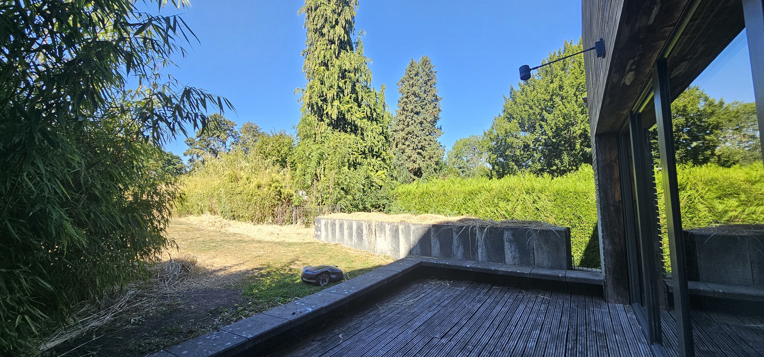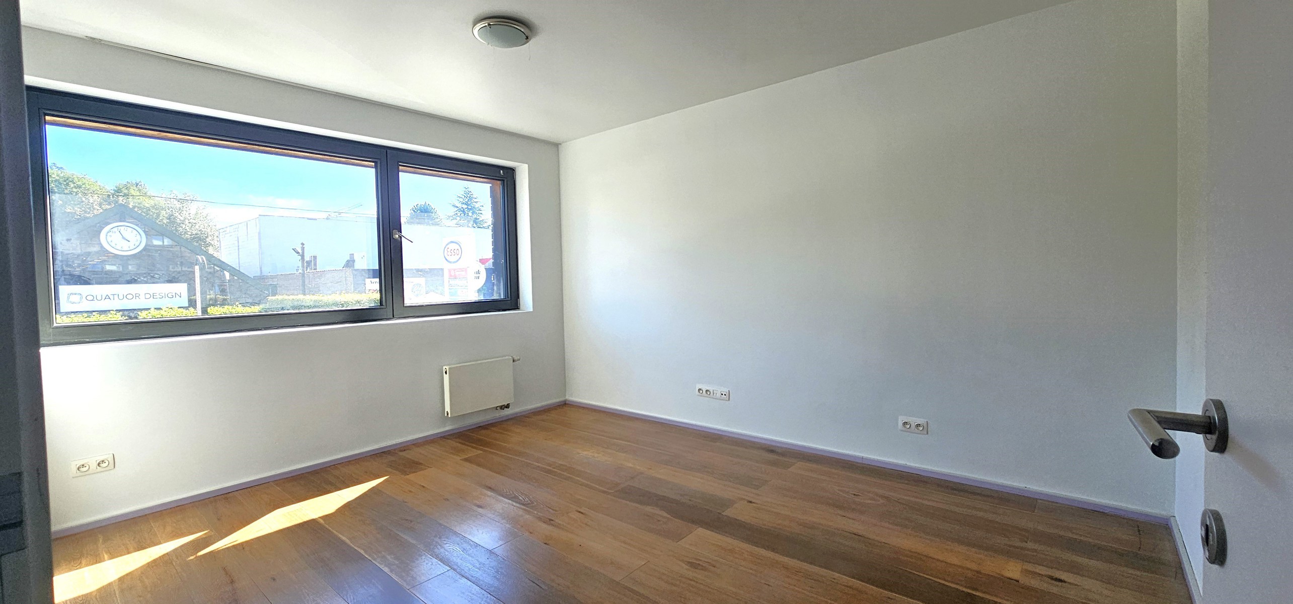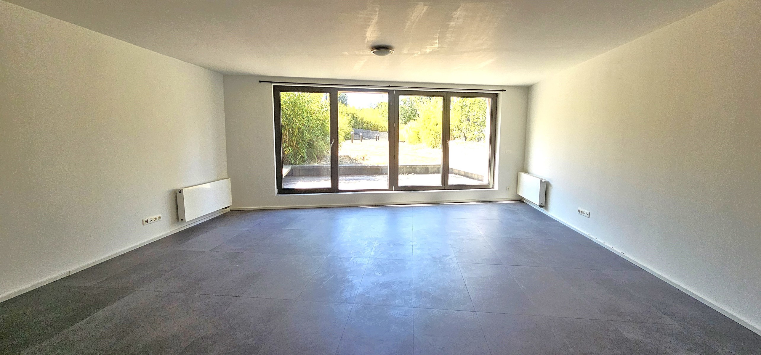 Il se compose d’un vaste séjour de +/- 54 m² avec une grande baie vitrée donnant sur la terrasse et le jardin, d’une cuisine ouverte, de trois chambres (une chambre principale de +/- 15 m², et deux chambres de +/- 9,5 m²), d’une salle de bains, d’une salle de douche, d’un espace buanderie et de toilettes séparées.
