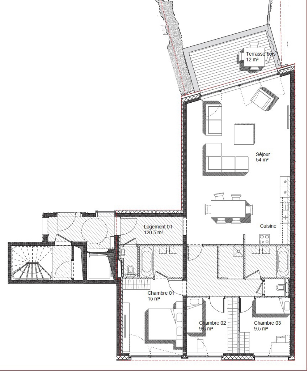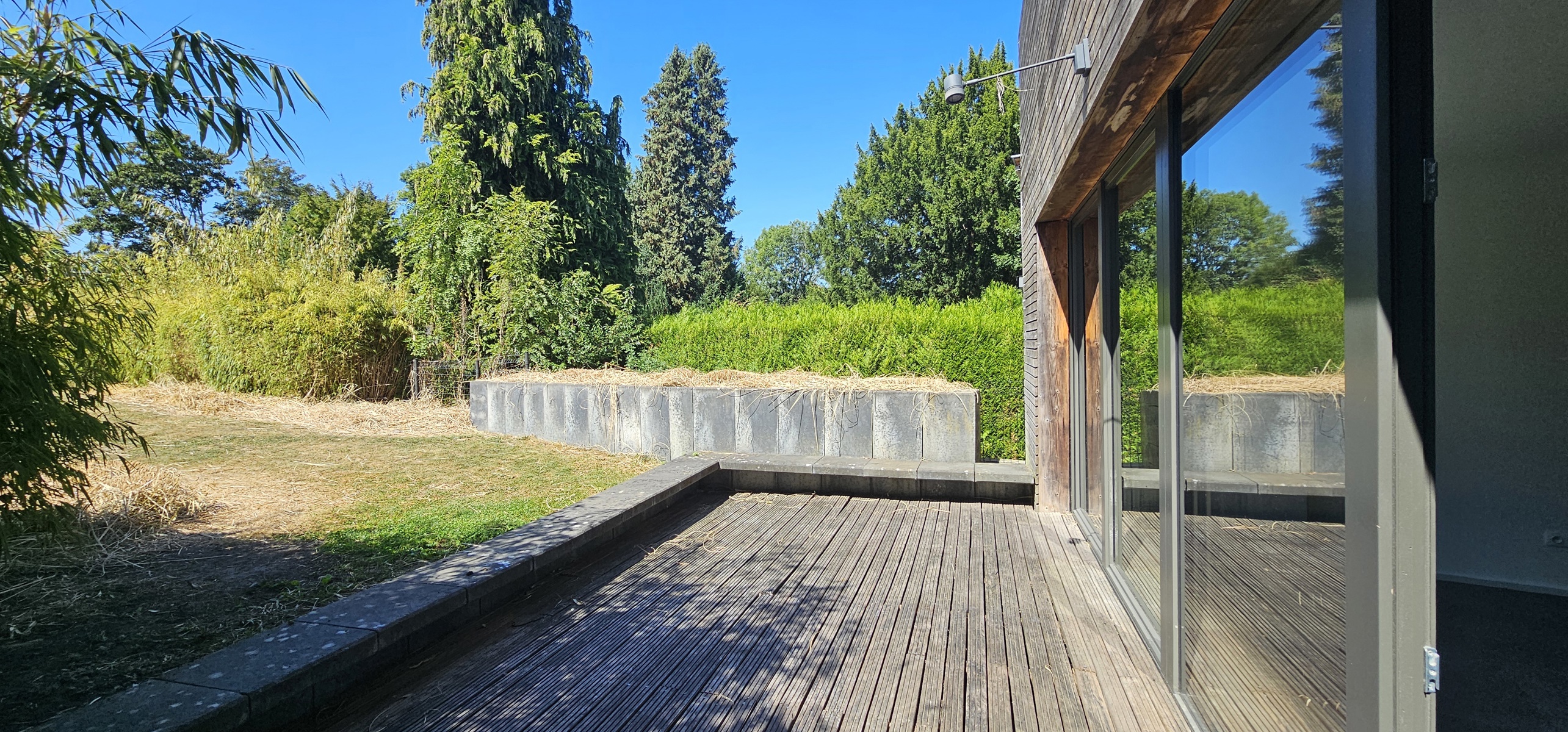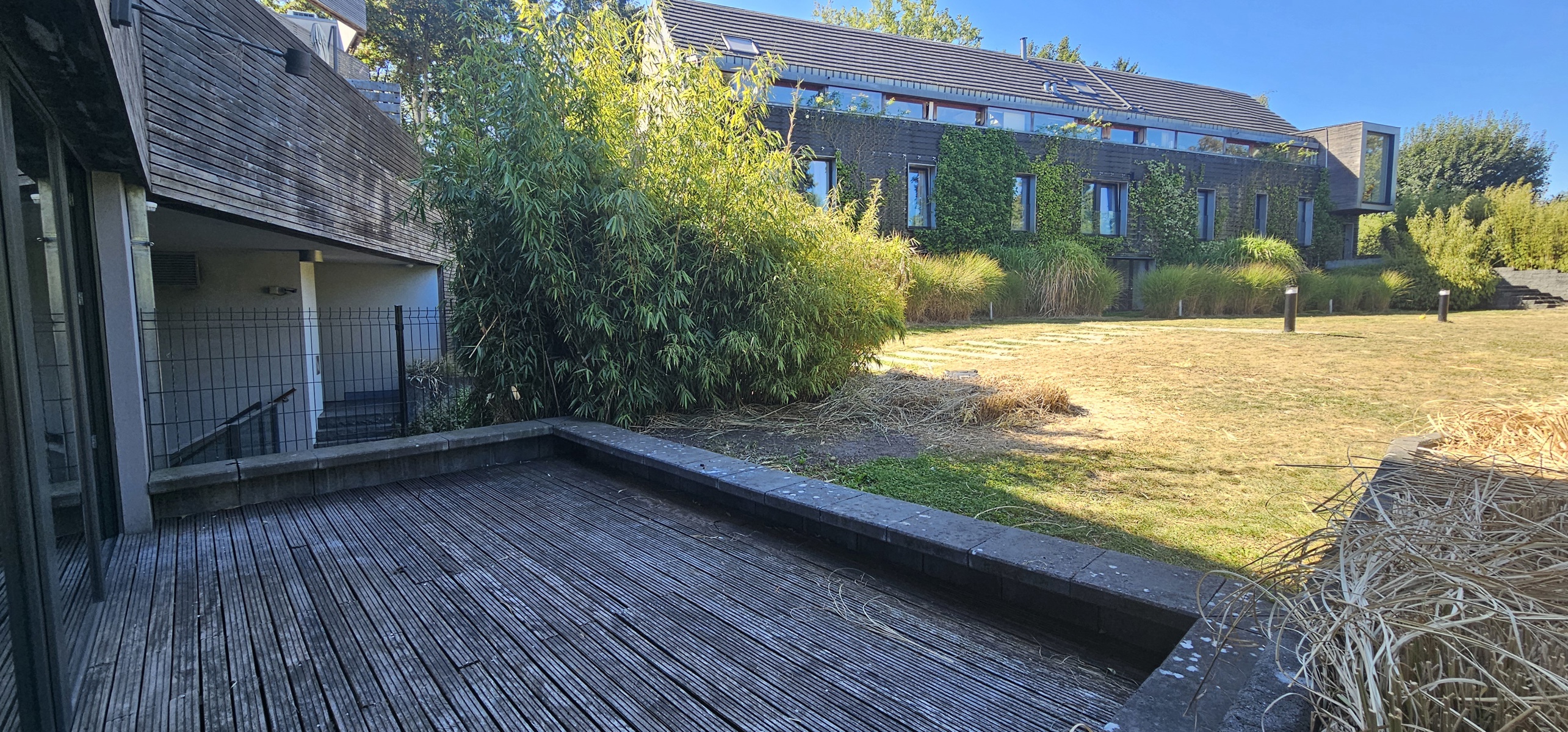 Dans un cadre verdoyant unique. Rez-de-jardin 3 chambres avec terrasse et extérieur privatif. Dans un nouvel ensemble résidentiel contemporain à taille humaine, le logement L01 se trouve au rez-de-jardin du bâtiment côté rue. Ce simplex développe une superficie de +/- 141 m² habitables, agrémentée d’une terrasse en bois de 12 m², idéale pour profiter des beaux jours.