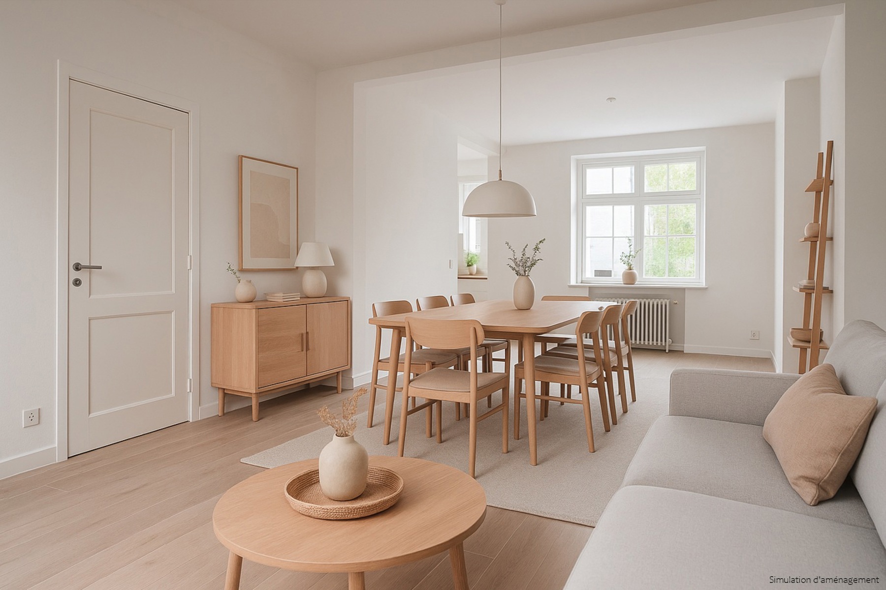 En bel étage, un hall avec rangement intégré, un vaste séjour lumineux, espace salle à manger, cuisine équipée (lave vaisselle, taque de cuisson, four, rangements, hotte sur l’extérieur). À l’étage supérieur, petit hall idéal pour installer du rangement, deux grandes chambres, une salle de bains avec baignoire et douche. Possibilité de bureau pour profession libérale.